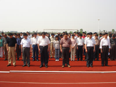 5月19日下午14时28分起,我校党政机关全体人员、教师和学生等分别在运动场、教室、实验室、有关场所默哀3分钟。(宣传部 任苔蓉/文 王军/摄  办公室 李国柱/摄  李广福/审)