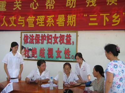 由于参加的同学们来自我系的各个不同的专业,根据自身专业的特点他们准备了各项针对性很强的帮扶活动。卫管专业调查新型农村合作医疗制度;医保专业负责当地农村医疗保险的调研;法学专业负责普法宣传;信管专业调查食品安全问题;应用心理专业组织“爱心助残”活动。