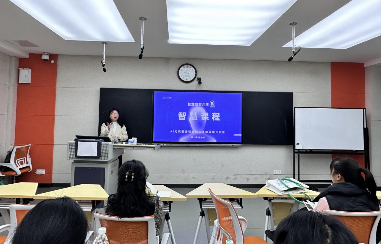 为切实推进国家教育数字化战略的实施,加速人工智能在教育转型中的应用,进一步提高我校智慧课程建设的质量,3月21日,学校在1号教学楼智慧教室举办“大AI教育背景下—智慧课程的精品化建设路径”专题培训会。本次活动邀请了智慧树高级讲师康士荣作专题报告。来自各教学单位的中青年骨干教师齐聚一堂,共同探讨“生成式AI+深度混合式教学”的新型课程范式。
