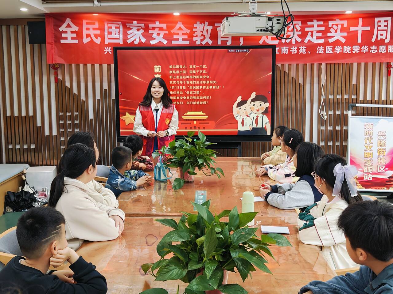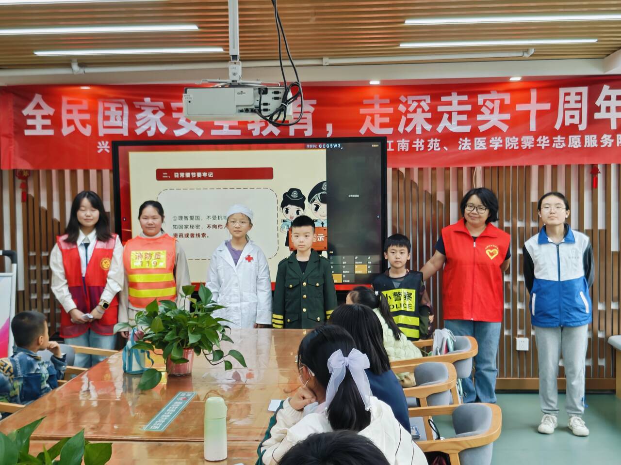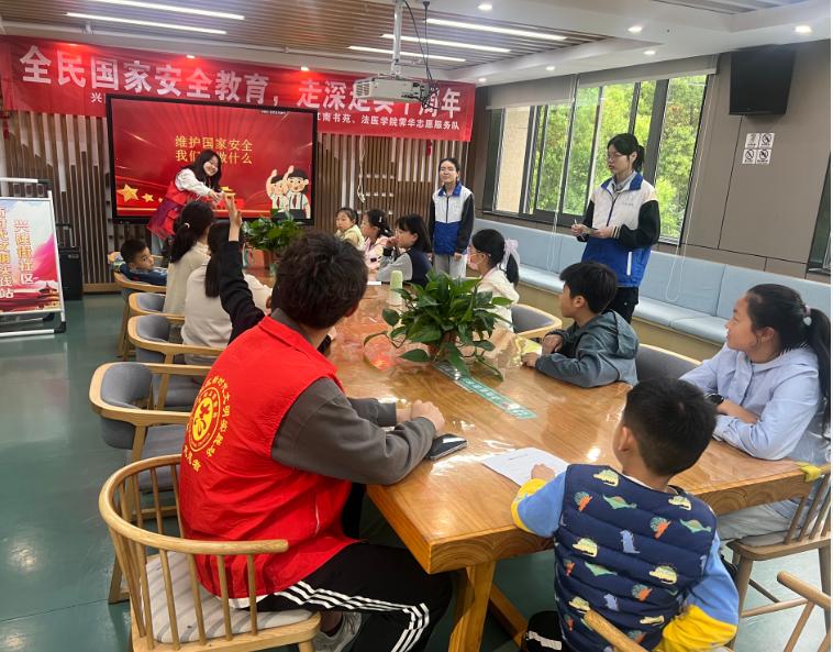在第十个全民国家安全教育日到来之际,4月12日上午,法医学院霁华志愿服务队联合兴隆街社区,在弋江南书苑开展“小手拉大手 共筑安全梦”全民国家安全教育日主题实践活动。大学生志愿者通过知识宣讲、互动问答、角色扮演、创意绘画等丰富形式,为社区小朋友们带来了一场别开生面的国家安全教育课。