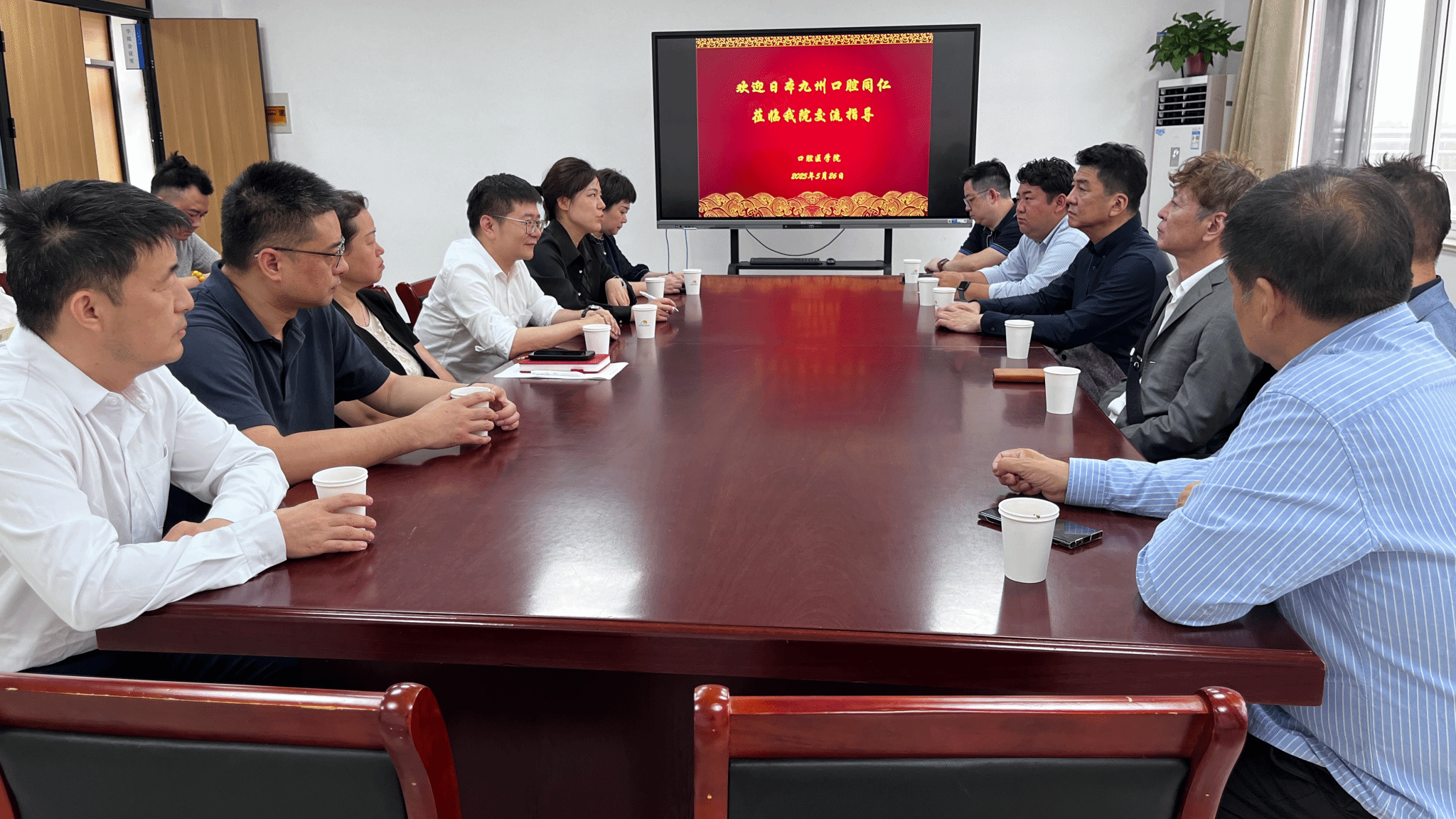 5月26日下午,日本齿科专家重住 大乘博士(重住齿科医院院长)、三箇 正贤博士(三箇八幡西医院院长)一行10人,到访口腔医学院开展交流活动,口腔医学院党委书记柴琳、副院长邓超等相关人员参与交流。