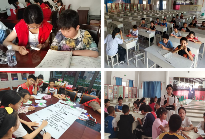 公益托管服务,助力学生成长。针对暑期儿童看护难题,“微尘”志愿队淮北、新疆分队在当地图书馆及托管中心开设公益托管课堂。志愿者为孩子们提供作业辅导,帮助制定科学学习计划,培养良好学习习惯;考虑到少数民族学生的需求,特别组织汉语一对一辅导与小组讨论,助力提升语言沟通能力;开设绘画、手工、体育等兴趣课程,让孩子们在丰富的活动中度过一个充实且有意义的暑假。