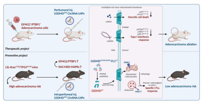 溶瘤性mRNA疫苗GSDMDENG circRNA-LNPs防治KRASG12D突变腺癌