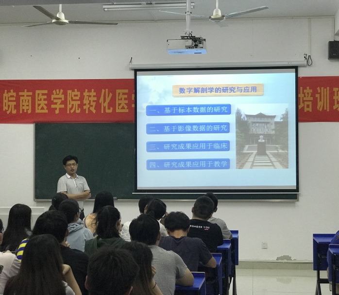 吴锋老师结合在山东大学访学进修断层影像解剖学的经历,围绕医学影像学专业特点,以高精度数字解剖图谱标注、CT三维重建的支气管分支类型为例,分别介绍了基于标本数据和影像数据的数字解剖学研究方法及其在临床与教学中的应用;还针对教学难点讲解了肺门断层解剖与CT的识别技巧,并勉励我院学生在以后的临床工作中,注意寻找切入点开展科学研究活动。